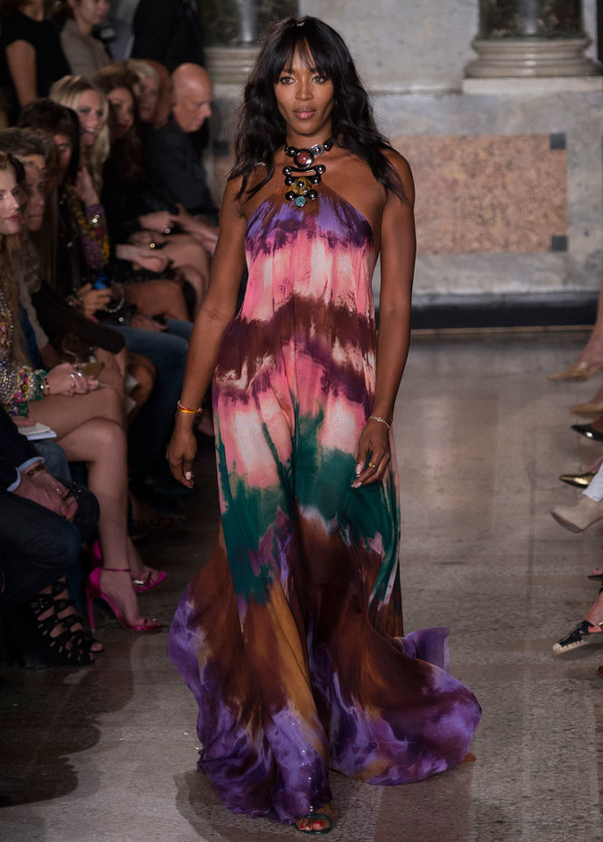 حافظت ناعومي كامبل على رشاقة جسمها وواكبت من خلال تمايلها على منصات عروض الأزياء أجدد التصاميم الفاخرة التي بدت أجمل على جسمها الممشوق. فعارضة الازياء ناعومي كامبل أضفت المزيد من الأنوثة على التصاميم التي عرضتها ولم تتردد بعرض صيحات الموضة الخاصة بأهم الماركات العالمية مثل شانيل Chanel وفرزاتشي Versace وآنا سوي Anna Sui وغيرها من التصاميم الفاخرة خلال أسابيع الموضة العالمية.