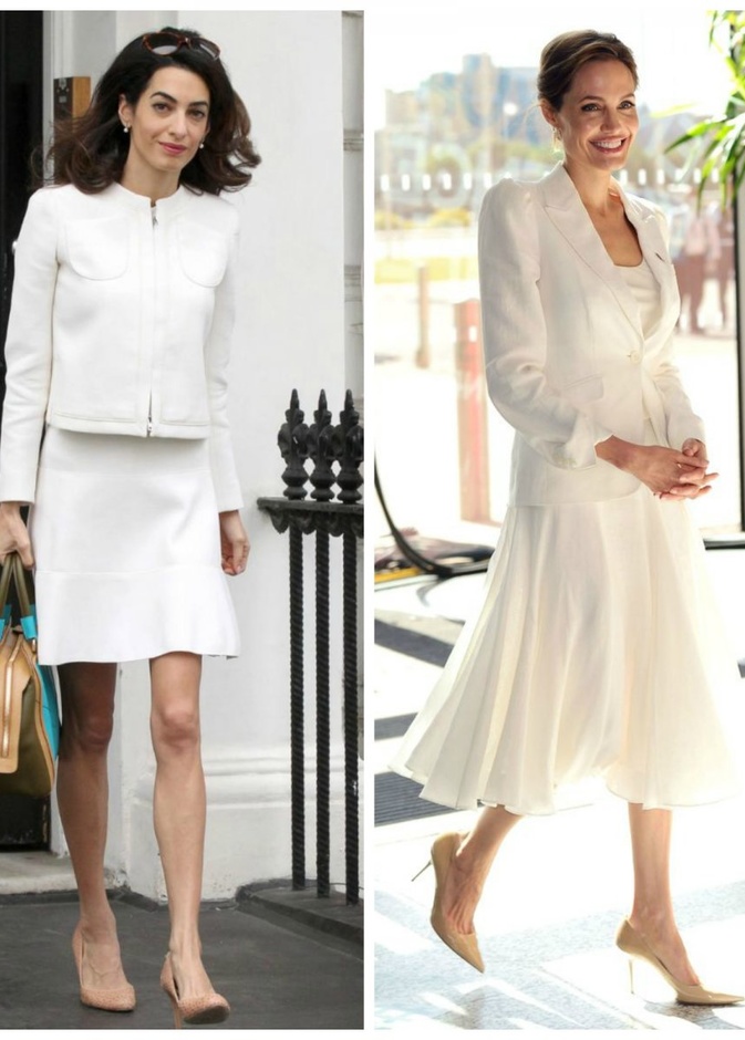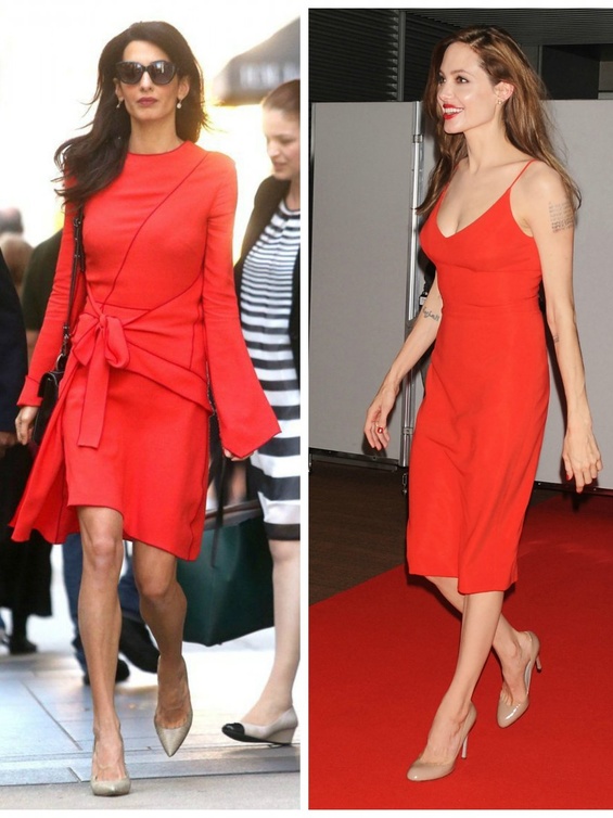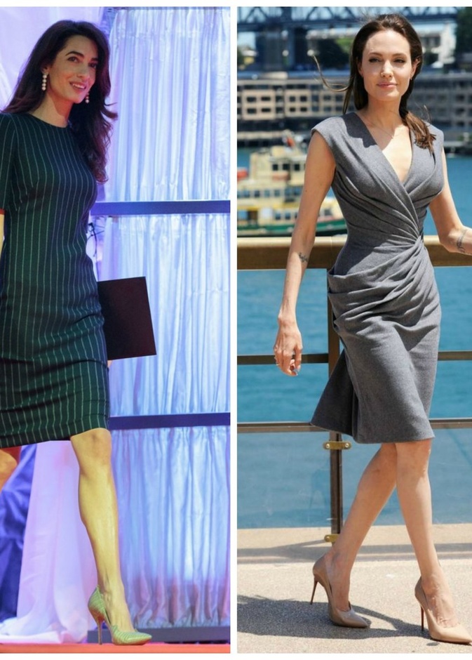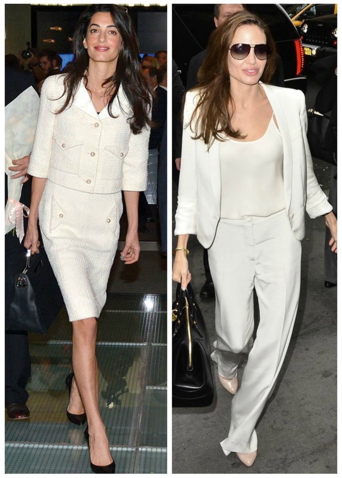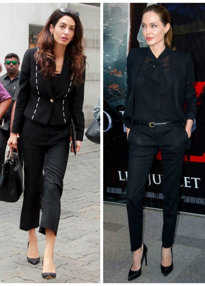 ورغم شهرتهما الكبيرة في عالم الأزياء إلا أن ستايل كل من أنجلينا جولي وأمل كلوني مختلف تماماً، فأنجلينا يطغى على أسلوبها لمسات البساطة المطلقة والراقية أما أمل فدائماً ما تفضّل الاطلالات الملفتة للأنظار والتصاميم المواكبة لأحدث صيحات الموضة.
