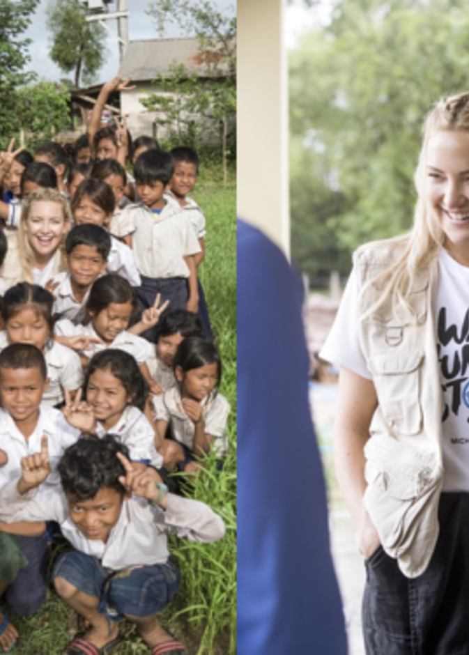 - وقد تعاونت الممثلة كيت هادسون مع مايكل كورس للحد من انتشار الجوع للمرة الثالثة ضمن حملة Watch Hunger Stop حيث زارت مدارس في كمبوديا لتقديم الطعام للاطفال.