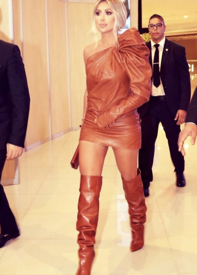 عودتنا الفنانة مايا دياب على اطلالاتها اللافتة والمميزة التي تختارها لكل مناسبة وكل حفل، وهي في كثير من الأحيان تختار الأسلوب الجريء وترتدي القطع القصيرة من الفساتين والتنانير والجمبسوت. ولاتقتصر جرأة مايا دياب على طول ما تختاره من الأزياء وإنما أيضا تعتمد الاكسسوارات الغريبة كالأحذية وألوان الشعر والماكياج الخارجة عن المألوف.