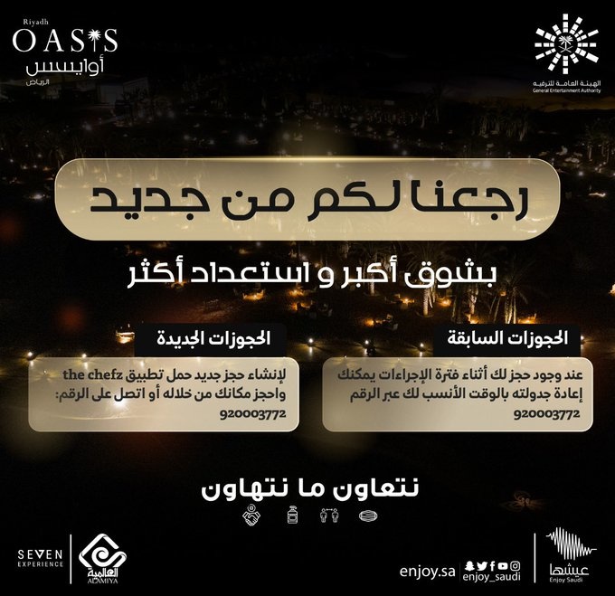 أوايسس الرياض تفتح أبوابها أمام الزوار من جديد.. إليكم خطوات الحجز