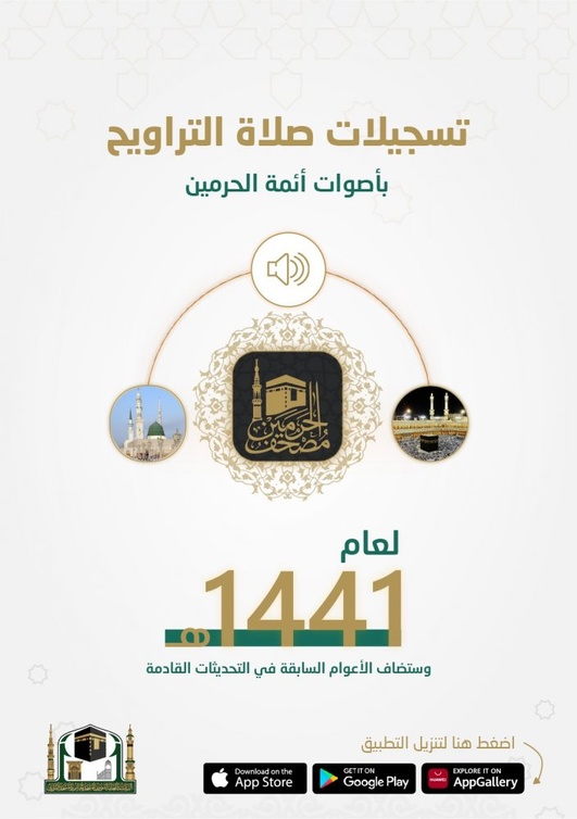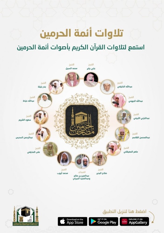 ويعد هذا التطبيق هو التطبيق الرسمي للرئاسة العامة لشؤون المسجد الحرام والمسجد النبوي, ويحتوي التطبيق على تسجيلات الحرمين الشريفين لصلاة التراويح للمسجد الحرام والنبوي لعام 1441هـ، والتلاوات القرآنية لأئمة الحرمين, كما يحتوي على «التفسير الميسر» الذي يمكن استعراضه كاملًا أو على مستوى السورة أو آية أو آيات يحددها المستخدم، مقسمًا بحسب الآيات مع تمييز الآية في التفسير بالرسم واللون وبيان رقمها.