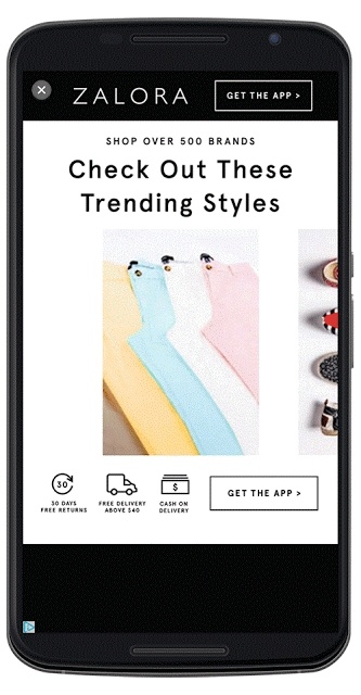 أما الميّزة الثانية والتي حملت إسم Interactive Interstitials فهي تُتيح لأي مُطوّر إنشاء نسخة تفاعلية من إعلانه بواسطة لغة HTML 5، حيث يُمكن على سبيل المثال تضمين أكثر من صورة مع إمكانية الانتقال بينها من خلال لمس الشاشة باتجاهات مُختلفة لاستعراض المحتوى، وهذه ميّزة مُفيدة لأصحاب الشركات التجارية التي تُقدّم الكثير من المنتجات، حيث يُمكن للمستخدم الإطلاع على محتوى المتجر قبل تحميل تطبيقه.