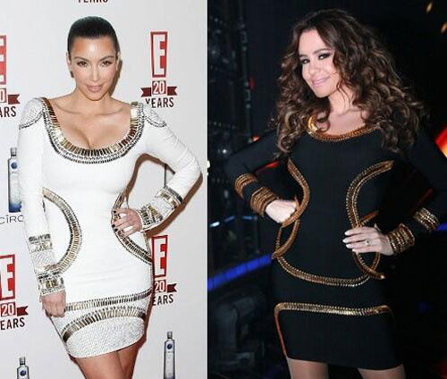 تألقت الفنانة اللبنانية كارول سماحة فى حلقة برنامج اكتشاف المواهب "أكس فاكتور"، بفستان أسود قصير مطرز بخطوط ذهبية عند الخصر والصدر بنفس قصة فستان النجمة العالمية كيم كارداشيان من مجموعة VERSACE. وكانت كيم اختارت نفس ماركة الفستان لكن بلون أبيض أثناء قيامها بالدعاية لإحدى الماركات العالمية في عام 2012. وقد لاق الفستان بكل من النجمتين الجميلتين، إلا أن كارول بدت أكثر حشمة فيه وأكثر رشاقة باللون الأسود واختارت تسريحة الشعر المجعد، فيما بدا الفستان على كيم مكشوفا عند الصدر وأظهرت مفاتنها الممتلئة، أما شعرها فاعتمدت له تسريحة ذيل الحصان. فمن برأيكم حازت على الإطلالة الأجمل بهذا الفستان المميّز؟
