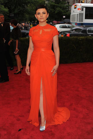 Ginnifer Goodwin ارتدت الفستان نفسه أثناء حضورها العرض الأول لأوبرا met gala 2012 ، ولكنها اختارت لونها المفضل البرتقاليّ المشرق والحذاء الفضيّ المغطّى بالساتان من Christian Louboutin ، مع مجوهرات من H.Stern .
