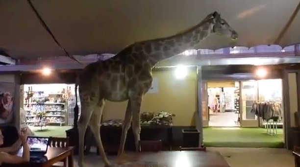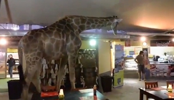 بالفيديو: زرافة تتجول داخل مطعم
