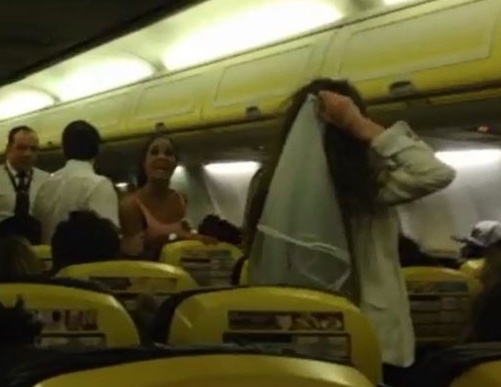 قامت إحدى وصيفات الشرف وتدعى كاثرين هانافين 33 عاما، بتقديم شكوى رسمية إلى الشرطة بسبب هجوم من قبل العروس عليها بعد منتصف الرحلة الجوية على طيران Ryanair إلى برشلونة.