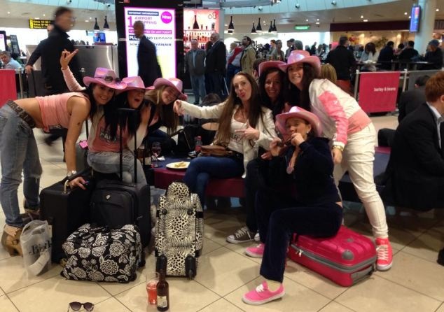 كاثرين والعروس كيلي لويد 30 عاما تشابكتا بالأيدي في الجو خلال الاحتفال بحفلة الحنة الخاصة بالعروس في الطائرة من مانشستر إلى برشلونة وفقا لصحيفة ديلي ميل البريطانية.
