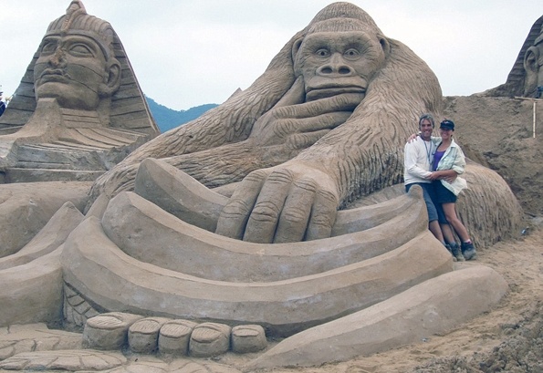 جاب رحالة بريطاني وزوجته الهولندية شواطئ العالم، وقاما ببناء تماثيل ضخمة من الرمال، ترقى بتفاصيلها المدهشة إلى أعمال أشهر النحاتين العالميين.