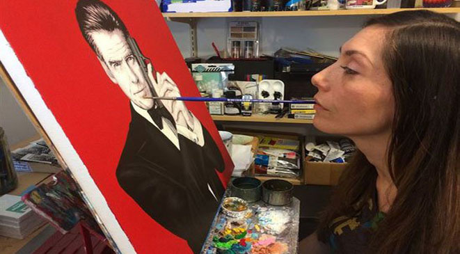 رسّامة تبدع... باستخدام فمها