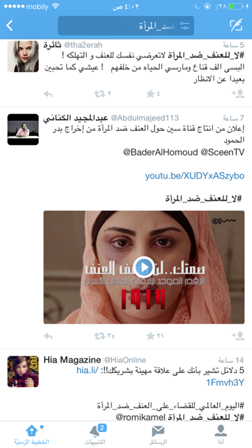 هاشتاق لا للعنف ضد المرأة يدافع عن السعوديات