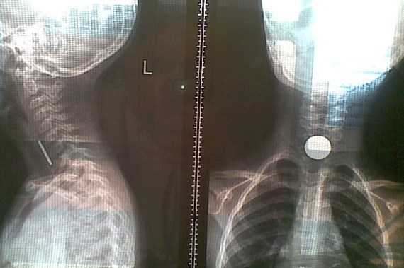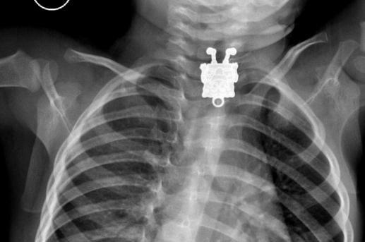 وأظهرت الأشعة وجود جسم غريب بالمريء، وبعد استدعاء اختصاصي الأنف والأذن والحنجرة، تم نقل الطفلة إلى قسم العمليات تحت التخدير العام وإجراء عملية جراحية لها تم من خلالها إخراج القطعة المعدنية "قطعة نقدية" من مريئها، تكللت ولله الحمد بالنجاح.