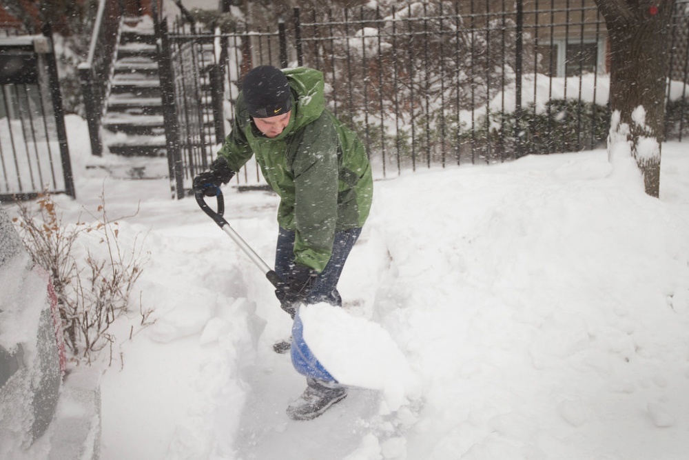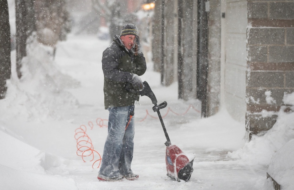 بدأت الثلوج تتساقط بكثافة على المدينة منذ ليلة السبت واستمر بعدها تساقط الثلوج دون توقف تقريبا لمدة 24 ساعة قبل أن تهدأ العاصفة قليلا.