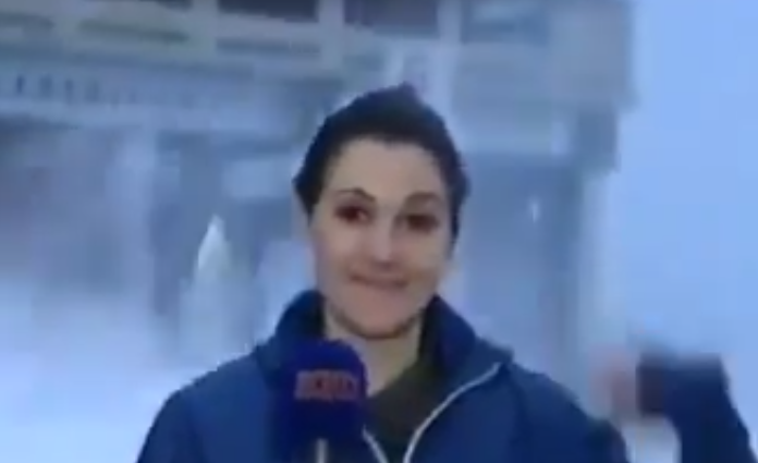 وعلى الرغم من محاولة المذيعة بالاستوديو تحذير المراسلة لكن الموجة كانت أسرع بكثير متسببة بوقوعها أرضاً، غير أن هذا الموقف لم يمنعها من استكمال التقرير ، ونهضت لمواصلة تقديم تقريرها.