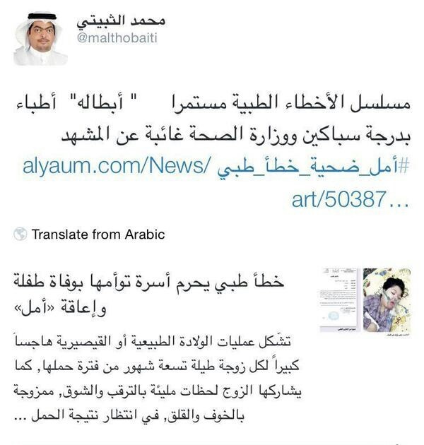 وتداول المغردون بأسًى بالغ إحدى التغريدات التي نشرها الإعلامي محمد الثبيتي قبل 3 سنوات، متحدثاً فيها عن الأخطاء الطبية ومطالباً الجهات المسؤولة بالتدخل لحماية الأرواح، حيث كتب على صفحته الشخصية: