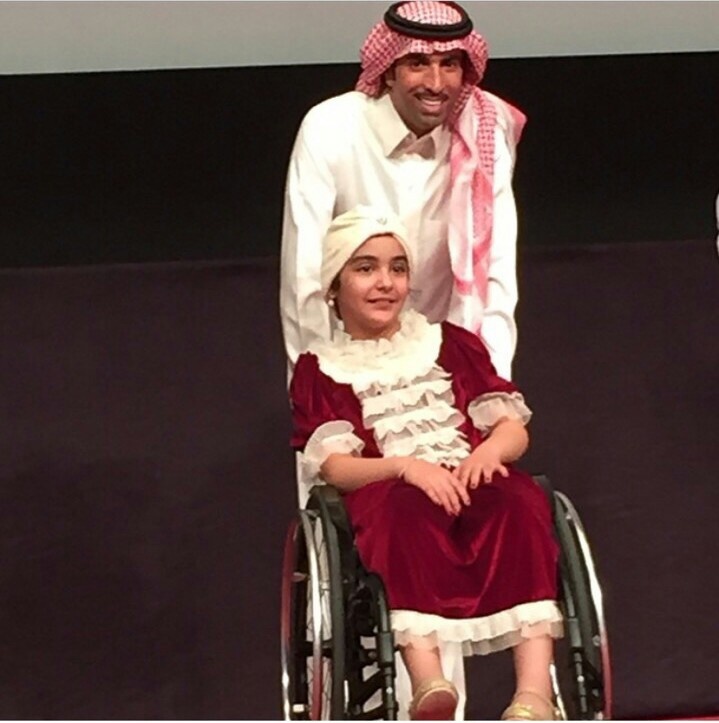 -غلا الخالدي طفله من ذوي الإعاقة الحركية لم تمنعها ولم تحرمها إعاقتها بأن تكون أول طفله مودل على كرسي متحرك بالخليج.