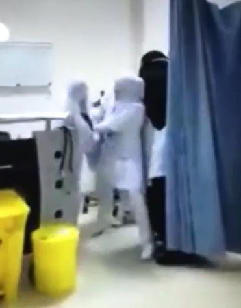 هذا ما أظهره مقطع فيديو تداوله مستخدمو مواقع التواصل الاجتماعي، تضمن تضارباً شديداً بين ممرضات بقسم الطوارئ بإحدى مستشفيات المملكة، فيما لم ينجح الطاقم الطبي المتواجد بالمستشفى في تهدئة الممرضات وإيقاف هذا التضارب.