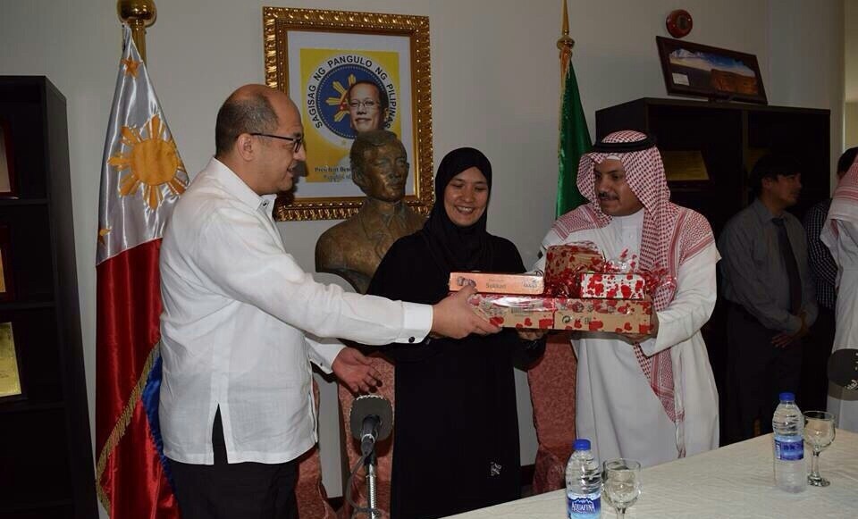 كما قدم القحطاني عددا من الهدايا إلى الممرضة التي أعلنت اعتناقها الإسلام عقب استقدامها للعمل في المملكة، وكذلك قدم درعا تذكارية للسفير الفلبيني.