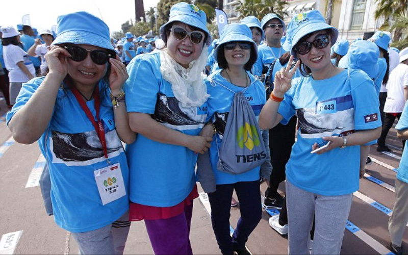 ودخل موظفو الشركة موسوعة "غينيس" للأرقام القياسية، حيث شكلوا أكبر سلسلة بشرية على ساحل "كوت دازور" جنوبي فرنسا، حيث اصطفوا لتشكيل عبارة: "حلم تيان رائع في كوت دازور".
