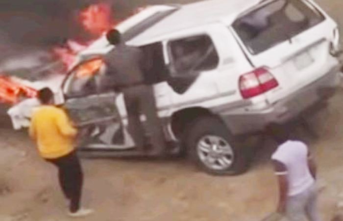 بالفيديو: إنقاذ سعودي علق بداخل سيارته وهي تحترق!