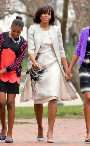 أما السيدة الأميركية الأولى Michelle Obama، فقد اختارت فستاناً رمادياً قديماً مطبوعا بوردة كبيرة يبدو أنه المفضل عندها، ويحمل توقيع PrabalGurung، لتحضر به عيد الفصح في كنيسة St. Johns Episcopal في واشنطن، فقد ظهرت به من قبل مرتين في عامي 2010 و2012، ولكن يبدو أنه يمثل بالنسبة لها قيمة خاصة، كما أن الفستان مازال يحمل نفس التألق والأناقة وكأنه يتجدد مع الزمن.
