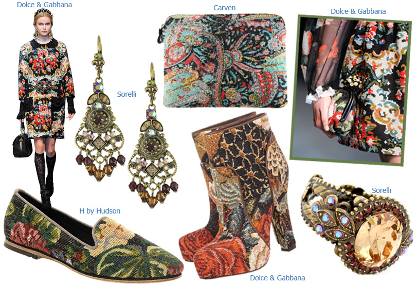تيار جديد من الفخامة يجتاح عالم الأزياء يضم مزيجًا من الأقمشة الملونة غنية القوام . وقد احتلت تصميمات التابستري الموحية مركز الصدارة هذا الخريف مع مصممين أمثال دولتشي & جابانا يقود الطريق .