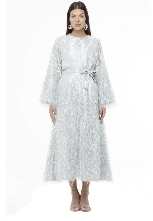 قفطانات فخمة بتفاصيل الريش لغبقات رمضان