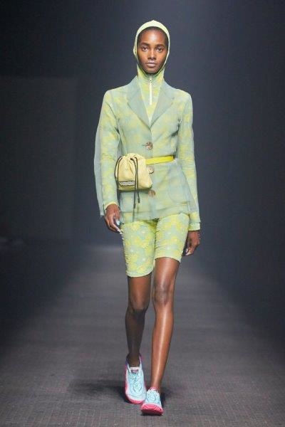 كذلك، تدخل التصاميم بقماش فيسكوز انسيابي، دينيم تم تبييضه بالشمس وطبعات "اإليكات" في كلتي المجموعتين. أما في الملابس ّ الرجالية، فيظهر لباس خارجي متين مغطى بالمطاط rubberisedباللونين البرتقالي والبنفسجي بينما تزخر قمصان في تصميم هاواي بطبعاتزنابق البحر أو قنافذ البحر.