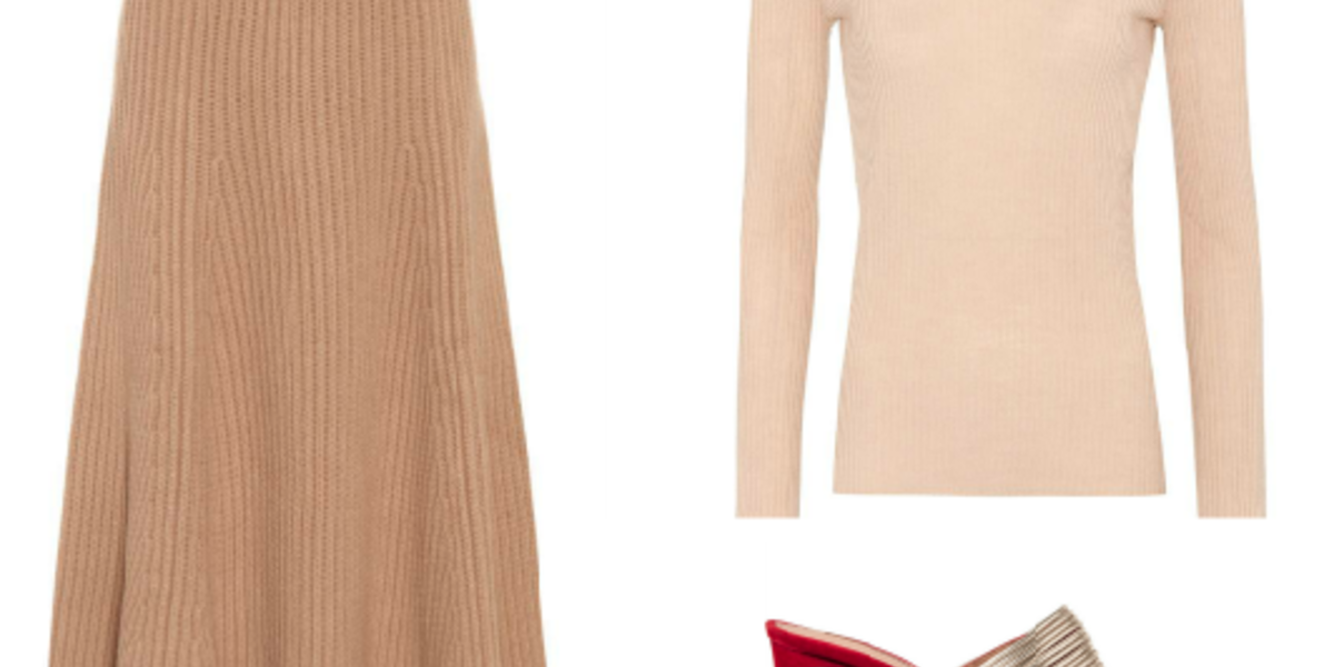 للمناسبات المسائية، نسّقنا لك اطلالة قمّة في الرقي مع لمسة عصرية بحذاء الميول باللون الأحمر من “اكوازورا” Aquazzura، ونسّقنا معها تنورة راقية بطول الميدي بلون البيج من “اغنونا” Agnona، مع توب بسيط بقصّة ضيّقة بلون البيج الهادئ من “كلوي” Chloe، وحقيبة جذابة باللون الذهبي بالدرجة الفاتحة من “كلير في” Clare V، وأكملنا الإطلالة بأقراط كبيرة وجميلة من Larkspur & Hawk.