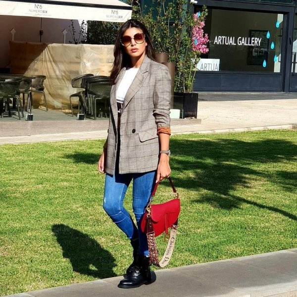 ويمكن أن تستوحي من إطلالات أمل بوشوشة أجمل الإطلالات الخريفية، فقد نسّقت الفستان بطبعة الورود مع الجاكيت الجلد وأكملت اللوك بحقيبة ديور باللون الأحمر. كذلك تألقت بفستان بقماش الجينز مع الحزام الجلدي العريض بتوقيع دار Dior. وفي صورة أخرى، إعتمدت موضة بنطلون الجينز مع البلايزر بنقشة المربعات.