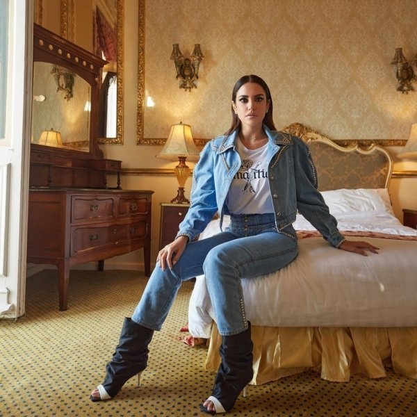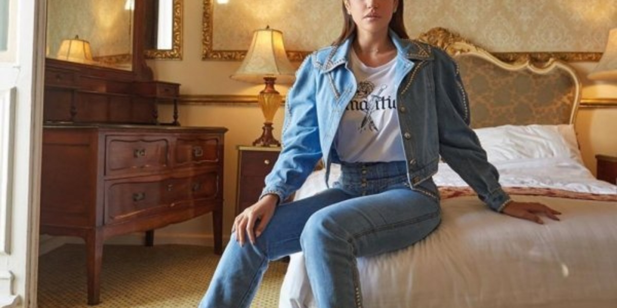 درة زروق التي تُعتبر من أكثر النجمات العربيات أناقة، تألقت بلوك دينيم كامل نسّقت فيه الجاكيت الجينز القصيرة المزينة بالشك الفضيّ في محيط الياقة والأكمام، نسّقت تحتها التيشيرت الأبيض وسروال بلوك الجاكيت جاء بقصة الخصر العالي. وللمسة عصرية إضافية أكملت اللوك بحزمة كعب عالي مفتوحة من الأمام.
