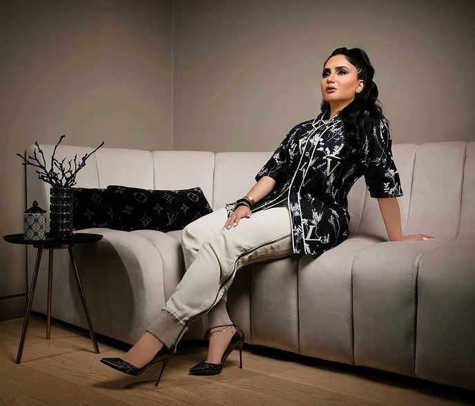 كما تألقت ولاء أبل بلوك كاجول أنيق من Louis Vuitton نسّقت فيه المعطف الخفيف القصير باللون الأسود مزيّن برسمات الأشجار مع السروال الفضيّ الواسع.