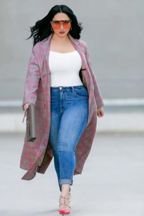 يمكنك أيضاً ان تستوحي من إطلالات ولاء أبل طرق تنسيق المعاطف الملوّنة وبنقشة المربعات مع البنطلون الدنيم في لوك يجمع بين الأزياء الشبابية العصرية والأناقة.