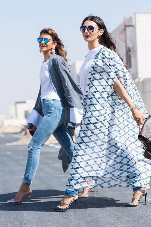 موضة القفطان مع السروال الدنيم مزيج مثالي بين الأناقة والعصرية