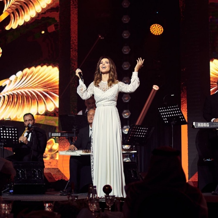 نانسي عجرم بالفستان الأبيض في حفلها بالرياض
