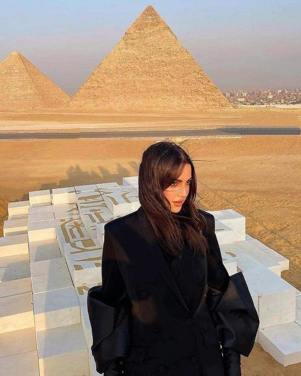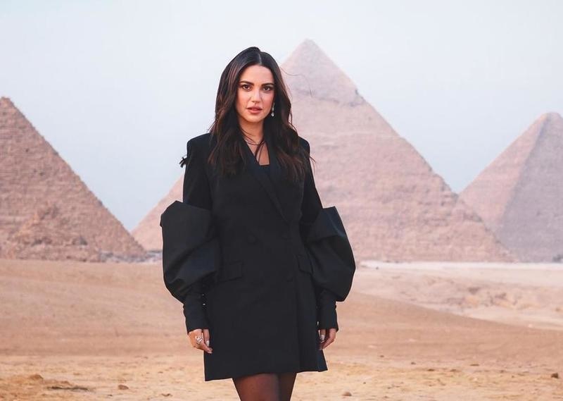 درة كانت قد ظهرت في الفترة الماضية بإطلالة جذابة وأنيقة في جلسة تصوير أمام الأهرامات بمصر جمعتها مع زوجها المهندس ورجال الأعمال هاني سعد في إحدى الفعاليات، وأبهرت متابعيها كعادتها بإطلالتها التي نسقتها بأسلوب جريء وجذاب حيث اختارت ارتداء معطف "بليزر" كفستان قصير، مما أعطاها اطلالة ملفتة وراقية، تتناسب مع بداية الأشهر الباردة، كما تميز البليزر بقصة فنية مميزة بأكمامه الطويلة والمنتفخة التي تضيق على شكل طبقة عريضة تغطي يديها بشكل أنيق ، وصمم البليزر بياقة بارزة وازرار صغيرة سوداء وجيوب عريضة.