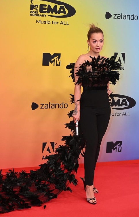 صور ريتا اورا بتصميم اسود خلال اطلالتها في حفل جوائز MTV Europe Music Awards خطفت الانظار بأجمل صيحات الموضة الفاخرة. فتمايلت بجمبسوت ساحر وعصري، يظهر قامتها الممشوقة وسحرها في انتقاء القطع التي تبرز جمالها.