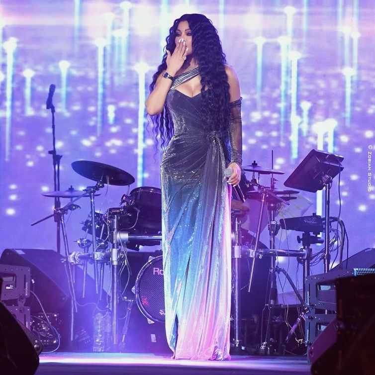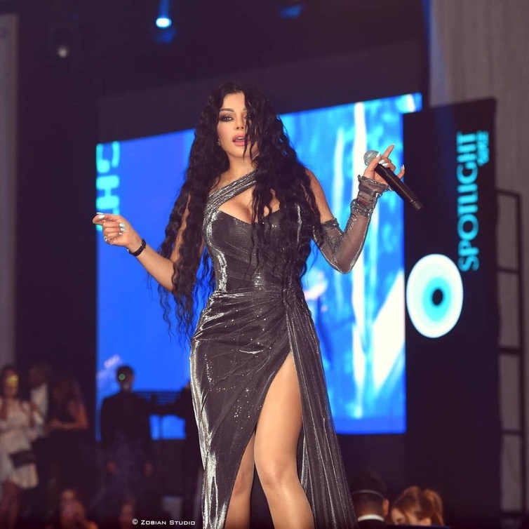 هيفاء وهبي مشعة على المسرح بإطلالة جريئة