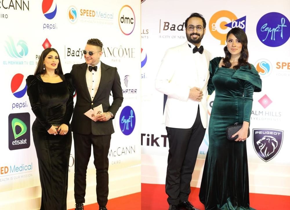 سلمى أبو ضيف فاجئت جمهورها بإطلالة صاخبة على السجادة الحمراء حيث أطلت بفستان باللون الزهري المفعم بالحياة، تميز بحمالتين رفيعتين وصمم بقصة البليسيه من ناحية الصدر، كما تميز بقصة فضفافة طويلة، وتصميم مكشوف من ناحية البطن بفتحة واسعة بشكل جريء، رزان جمال هي الأخرى أطلت بإطلالة شبيهة لسلمى أبو ضيف بفستان أحمر طويل مصمم بنفس الفتحة من ناحية البطن وتميز بشق جانبي عالي.