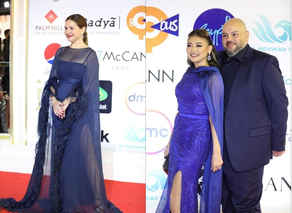 ريا أبي راشد اختارت إطلالة ساحرة وجذابة على السجادة الحمراء حيث تألقت بفستان أزرق طويل بشق جانبي جذاب وتميز تصميمه بأكمام شفافة ومنسدلة على شكل وشاح متدلي ومزين على أطرافه بالريش، ميار الغيطي ظهرت أيضا بإطلالة شبيهة لريا أبي راشد من ناحية تصميم فستانها الطويل الذي اختارته أيضا باللون الأزرق الملكي وتميز بشق جانبي ومصمم بوشاح شفاف متدلي كذلك على ذراعيها وزين الفستانين بحزام يحدد خصرهما بشكل أنيق.