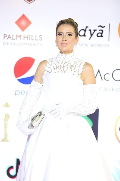 هنا شيحة وجميلة عوض ورانيا منصور تألقن بفساتين طويلة باللون الأبيض الناعم ونسقن جميعهن مع إطلالاتهن موضة القفازات العالية، حيث اختارت هنا شيحة التألق بفستان منفوش بدون أكمام تميز بياقة عالية شفافة مزينة بأوراق بيضاء متناثرة بشكل ساحر ونسقت مع إطلالتها قفازات بيضاء عالية مزينة بنفس أسلوب الياقة، أما رانيا منصور فسحرت الجمهور بفستان طويل مكشوف الاكتاف، بقصة ضيقة صمم بقماش التل المطرز بشكل فاخر واكتفت بارتداء قفاز واحد طويل شفاف زاد إطلالتها نعومة وجاذبية، جميلة عوض من ناحيتها نسقت مع فستانها الأبيض قفازات مخملية عالية باللون الأسود.