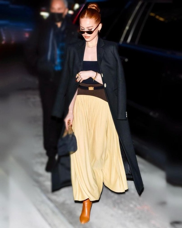 بدورها أطلّت Blake Lively بتصاميم شبابية خلال حضورها عرض Michael Kors مع موضة التنورة المستقيمة والبارزة مع الكروب توب الضيقة، ولم تتخلى عن موضة الجاكيت المريحة المنسدلة على الاكتاف بأسلوب فاخر ومميز. وسحرتنا اطلالة Katerina Tannenbaum بفستان فاخر باللون الاصفر خلال حضورها عرض Ulla Johnson. ولفتنا اطلالة Olivia Palermo بموضة الفستان الابيض مع الفراغات الجانبية في عريض PatBO فأتت في غاية الاناقة والجاذبية في هذه الاطلالة الكاجوال. ولا يمكن الا أن نثني على اطلالة Madelaine Petsch بتصاميم ساحرة مع التنورة الصفراء الطويلة وموضة المعطف الاسود الطويل خلال عرض Tory Burch