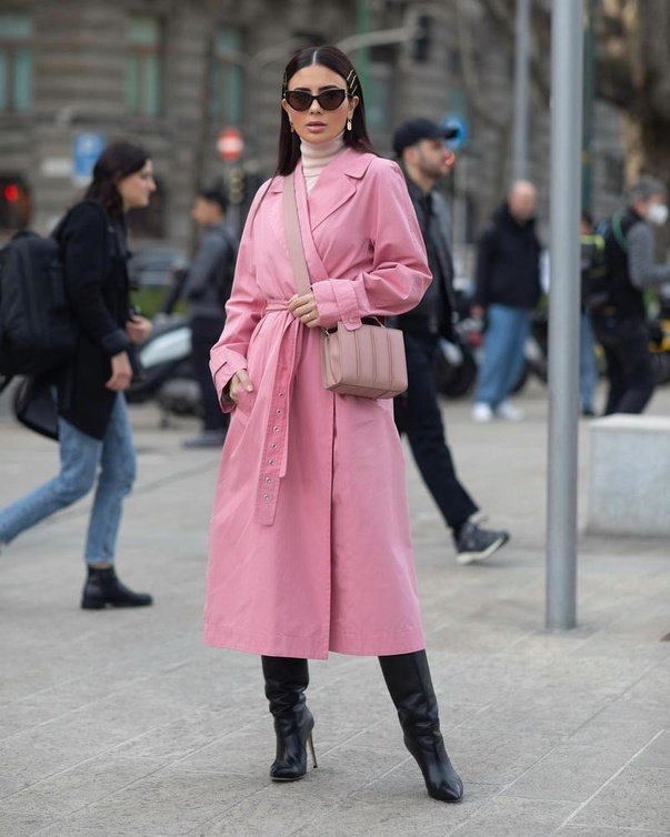 اطلالات متابعات الموضة في ميلانو ارتكزت على صيحة المعاطف الفاخرة والقطع الملونة التي جعلت اختياراتهن محط أنظار الجميع. فتألقت مرام زبيدة بموضة المعطف الاصفر الجلدي الفاخر بقصة منسدلة الى اسفل الركبة مع الرباط العريض والياقة العالية والرسمية، ونسّقته مع موضة البوت البرونزي اللماع ذات الساق العالية. بدورها تألقت ديما الاسدي بموضة المعطف الزهري الفاتح بقصته الطويلة والمنسدلة بأسلوب ساحر مع الحزام الرفيع على أعلى الخصر وتم تنسيقه بموضة الحذاء الجلدي الاسود اللماع والعالي لاطلالة شبابية وكاجوال في ساعات النهار.