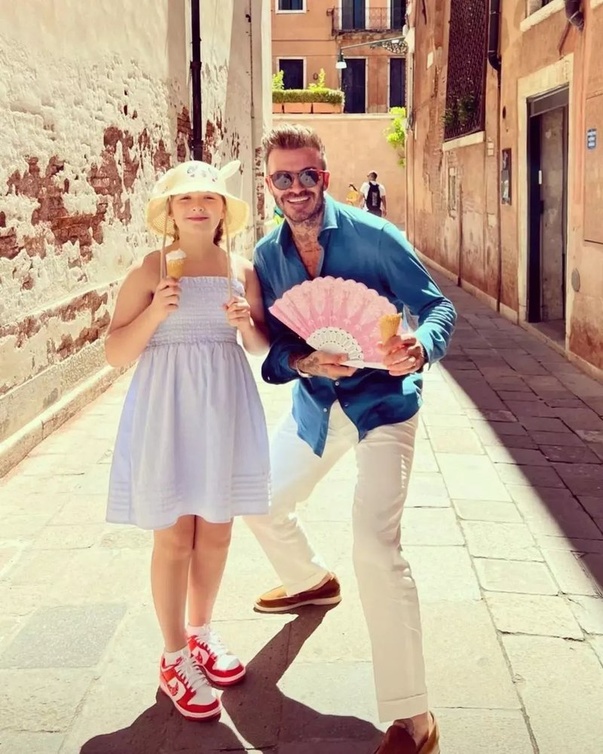 ابنة ديفيد بيكهام بفستان انيق وحذاء رياضي