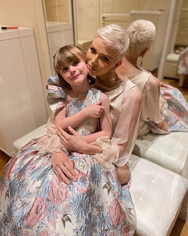الأميرة شارلين أميرة موناكو حرصت على اصطحاب ابنتها الأميرة غابرييلا ذات الـ7 سنوات، لحضور إحدى فعاليات أسبوع الموضة في مونت كارلو، وشاركت أميرة موناكو صورة مع الجمهور على انستجرام تظهر فيها إطلالة ابنتها التي تناسب عمرها، والتي تأثرت أيضًا بأذواق الأميرات حيث ارتدت الطفلة فستان منفوش باللون الكريمي والمطبع بالورود الضخمة البراقة باللونين الوردي والأزرق السماوي، مع كتف عريض، وكتف آخر مزين بكرانيش أضفت له لمسة مميزة.