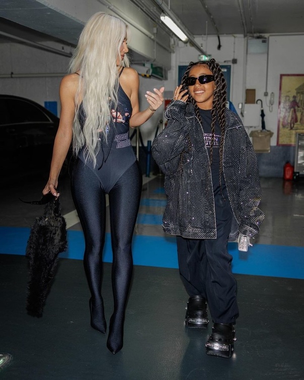 نورث البالغة من العمر 9 أعوام، ظهرت في مؤخرًا في عرض أزياء مجموعة جان بول غوتييه للخياطة الراقية لخريف وشتاء 2022-2023 وهي مرتدية إطلالة كلاسيكية من نفس خامة فستان والدتها، ولكن بأسلوب مختلف، جاء عبارة عن تنورة واسعة باللون الأسود ومقلمة طوليًا باللون الأبيض، مع كسرات عريضة وجيليه من نفس اللون والخامة، ونسقت معهما قميص أبيض ورابطة عنق سوداء، مع حذاء أسود طويل وضخم وقبعة سوداء كذلك، كما حرصت على أن تتزين باكسسوارات غير مألوفة على خطى أسلوب والدتها.