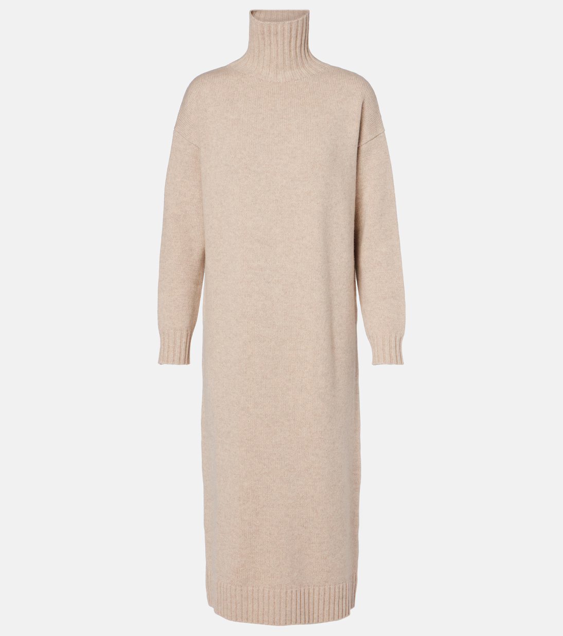 لموسم خريف وشتاء 2025-2026، اختاري فساتين ميدي أو طويلة مصممة بخامة الكشمير التي تعانق الجسم بدفء. فستان القميص "بالينو" Pallino من ماكس مارا يتميّز بياقة مدببة وأزرار أمامية مخفية، أما الفستان السويتر بأكمام طويلة وياقة عالية فاختاريه لمزيد من الدفء.