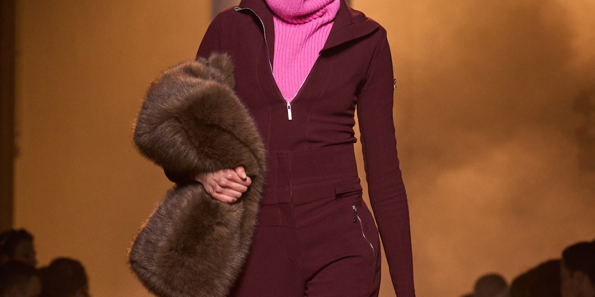 لا يمكن المرور بشكل سريع على تصاميم الجمبسوت الصوف الذييضفي لمسة من الدفء على إطلالتك في خريف وشتاء 2025، ونعتقد أن إضافة الجاكيت الفرو ستكون مثالية لهذا التصميم، ويتناسب تمامًا مع الجمبسوت الأنيق ضيق الساقين. اختاري هذه الإطلالة لمناسبة خريفية أو مناسبة رسمية واستوحيها من Ferragamo.