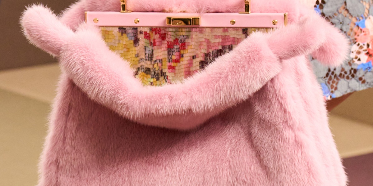 لم تبتعد "فندي" عن أسلوبها المعتاد لكنها أضافت لمسة مرحة ومضيئة إلى حقائبها الأكثر شهرة "بيكابو" Peekaboo.عندما تُفتح جوانب الحقيبة، تكشف عن بطانة داخلية مُطعمة بالترتر (Sequin-Lined) بألوان حيوية مثل الوردي والأخضر والأزرق، ما يضفي عليها بهجة غير متوقعة وأناقة براقة.