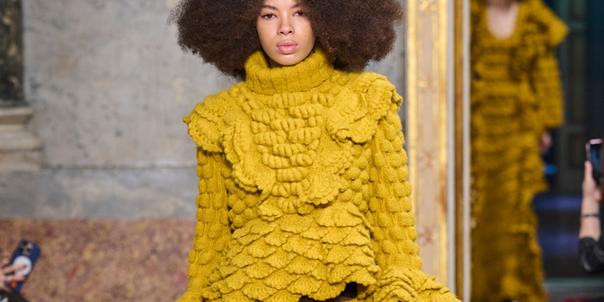 خيارات الطقم الصوف ليست محدودة، خاصة إن كنت ستنتقين هذه الصيحة لإطلالة رسمية أو كلاسيكية بعض الشي. مثلاً هذا التنسيق من Undercover يلاءم الإطلالات ذات الطابع الرسمي ليوم عمل أو لقاء رسمي. حتى أن اللون مميز جداً ويواكب صيحات ألوان الخريف، يمكنك تنسيق الطقم الصوف الكلاسيكي مع حذاء مسطح أو مع كعب عالي، ولا تتغاضي عن أهمية الأكسسوارات كالقبعة والبروش وحتى الحزام، كلها عناصر ستضفي لمسة من الرقي والأناقة والتفرد على إطلالتك وتجعلك من اللواتي يواكبن صيحات الموضة الراقية والتي تليق بهن.